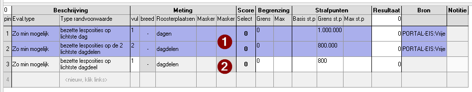Als we de lessen nu gaan roosteren, zal de automaat proberen op één dag geen lessen van beide lesverzamelingen te plaatsen. Immers dan hebben we wel een mixen dat wordt bestraft (in ons geval met 10.000 strafpunten).