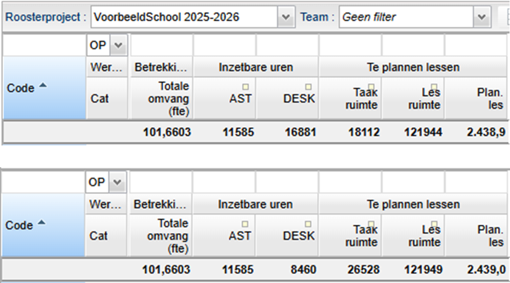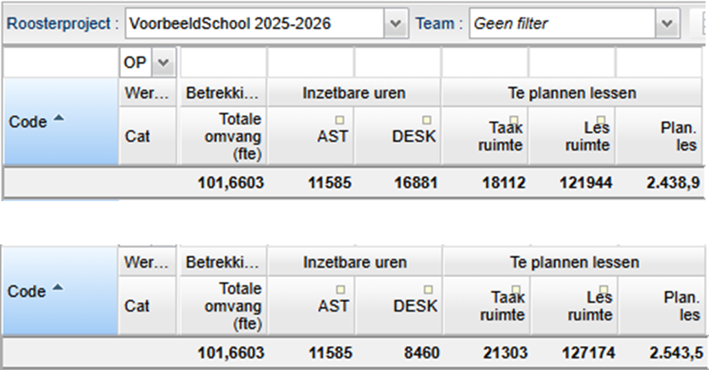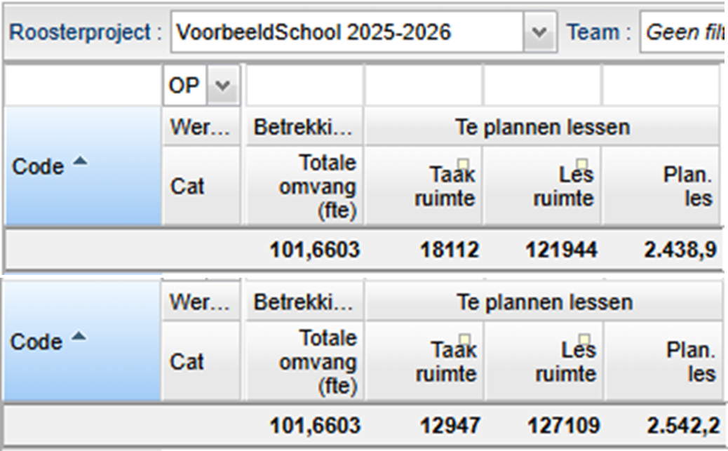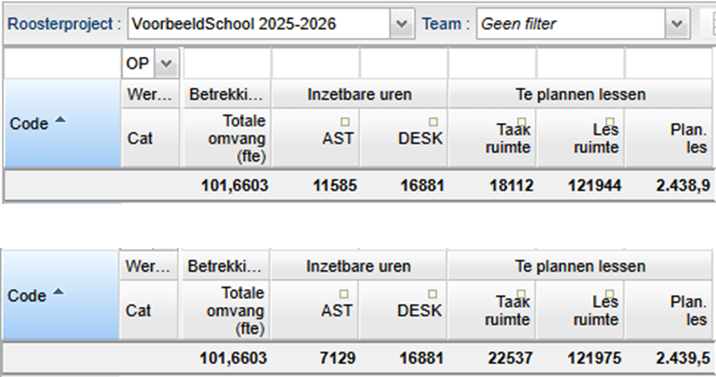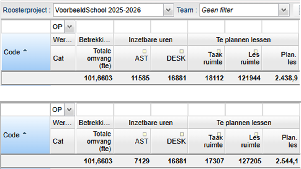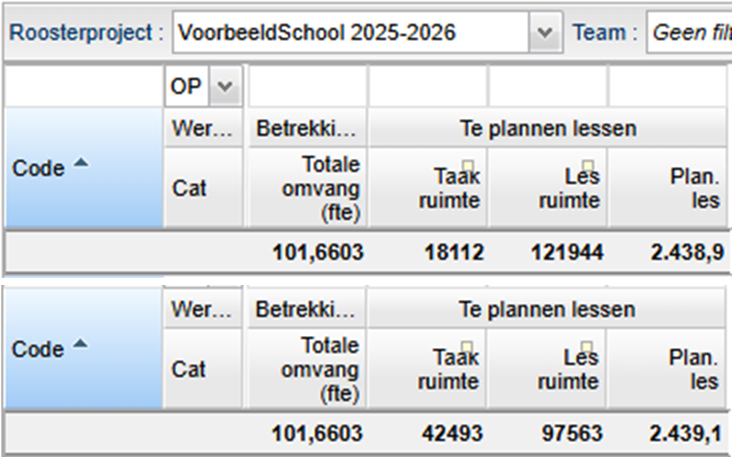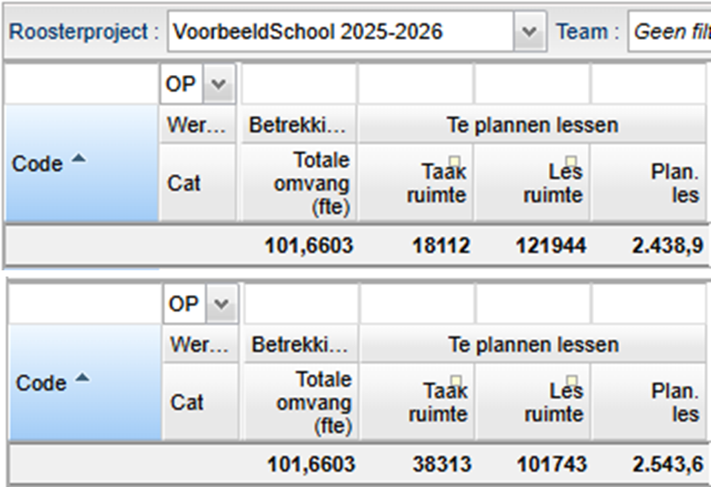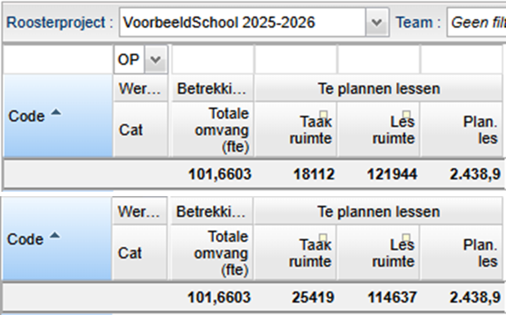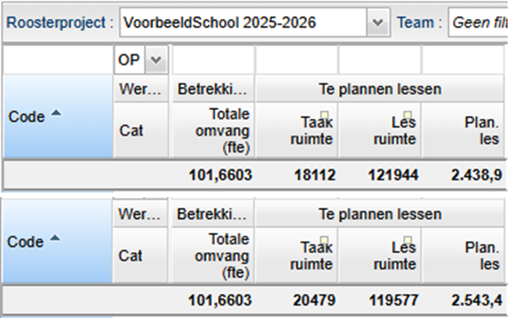 Wanneer u bovenstaande maatregel combineert met het verhogen van het maximaal aantal lessen dan wordt de taakruimte en de lesruimte groter. Het te plannen aantal lessen verhoogt ook.