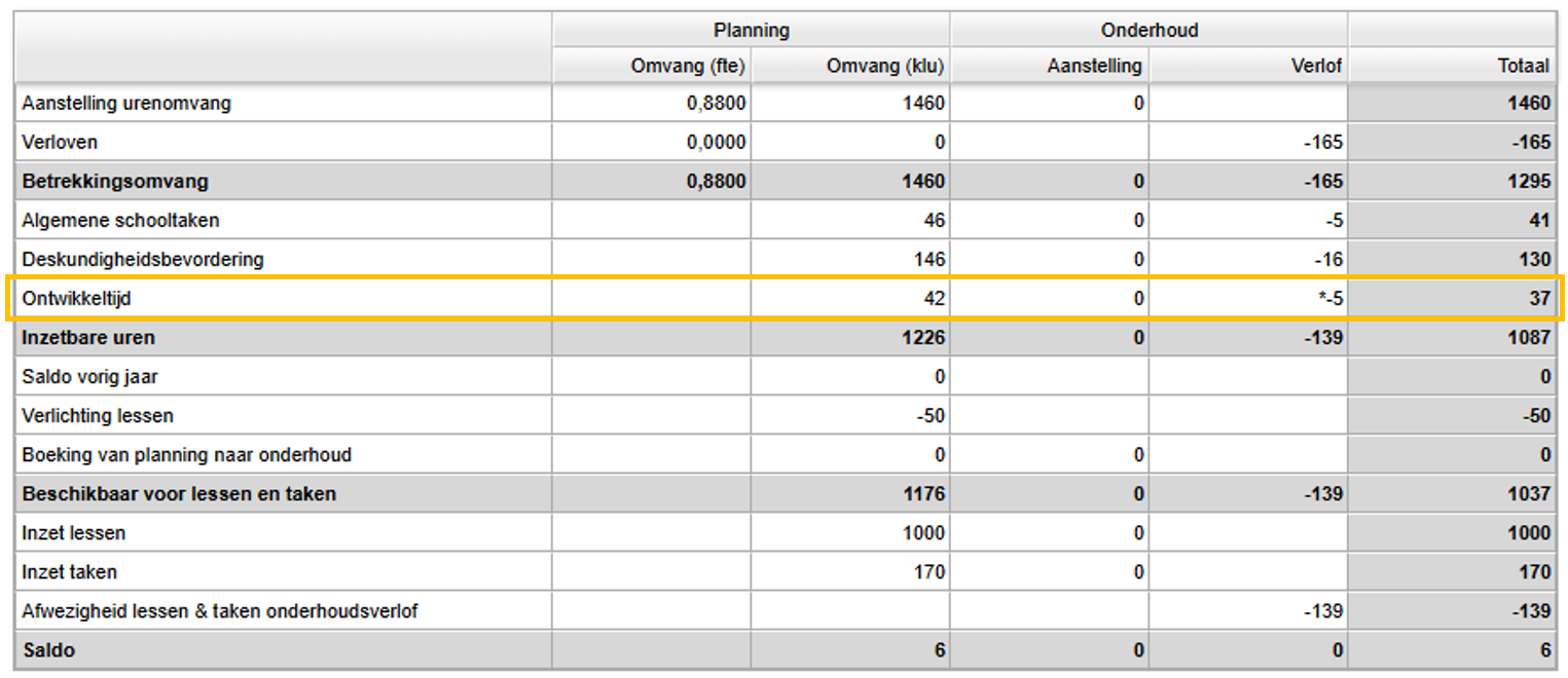 Bij Personeel > Formatie > Verlof onderhoud is mogelijk om handmatig vermindering van de ontwikkeltijd in te voeren.