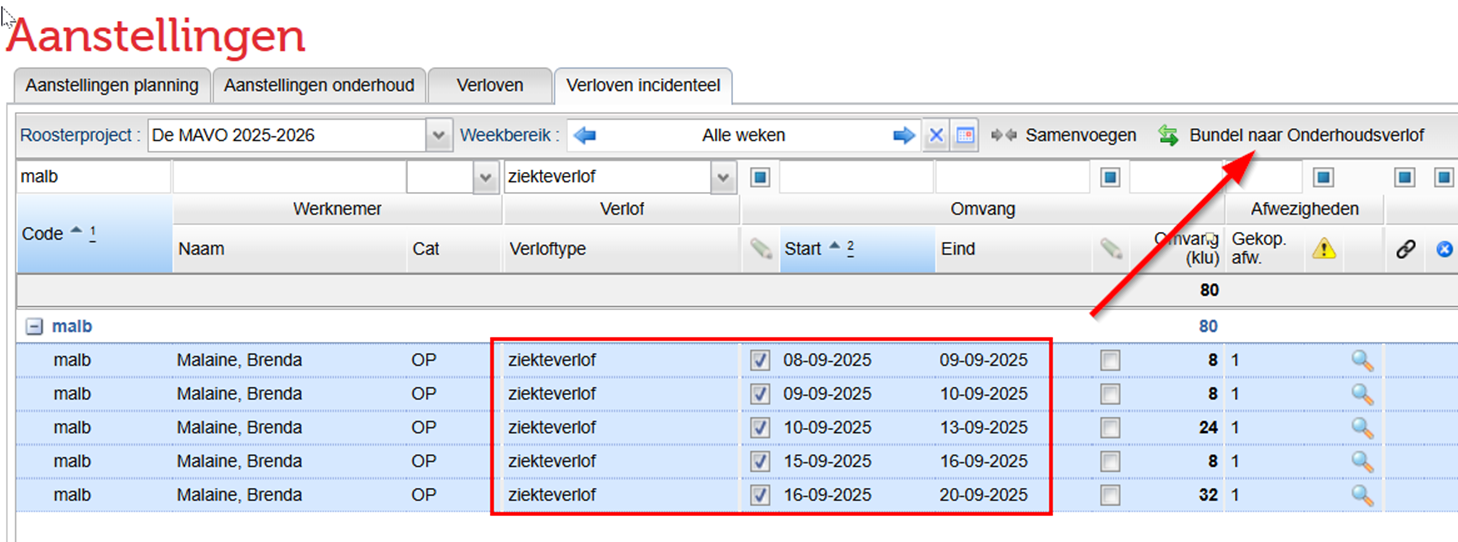 De formatiebeheerder heeft nu meer inzicht in de (incidentele) afwezigheden. Zodra een incidentele afwezigheid leidt tot een langer durend onderhoudsverlof, kunnen de incidentele afwezigheden gebundeld worden zodat er één onderhoudsverlof aanwezig is.