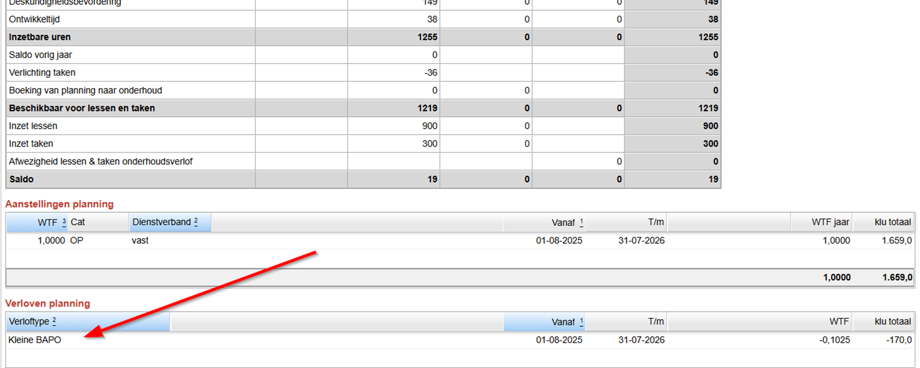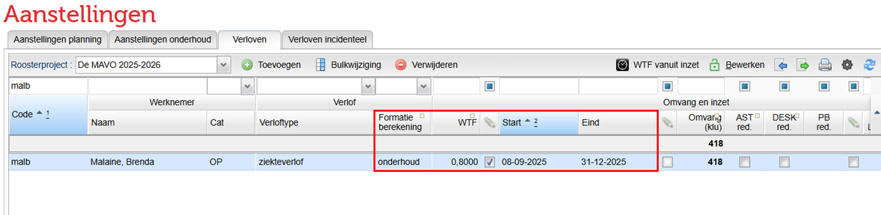 Dit onderhoudsverlof is ook zichtbaar op de formatiekaart van de medewerker.