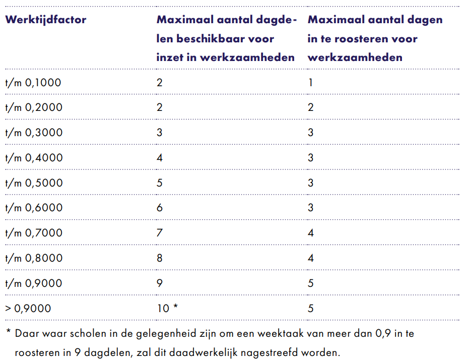 Er komt een randvoorwaarde die regelt dat de docent 2 dagen en 6 dagdelen vrij is.